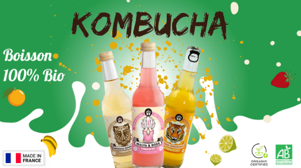 Création d'affiches et bannière web pour un projet de cours sur une boisson "thé pétillant Kombucha"